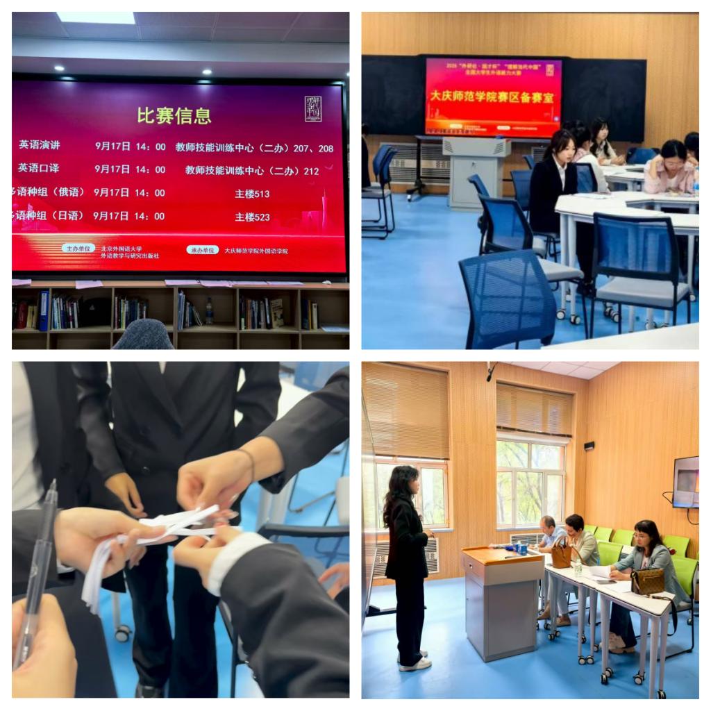 10月12日,由外国语学院承办的2025年“外研社·国才杯”“理解当代中国”全国大学生外语能力大赛大庆师范学院校选赛六个赛项的比赛圆满落幕,包括英语演讲、英语口译、英...