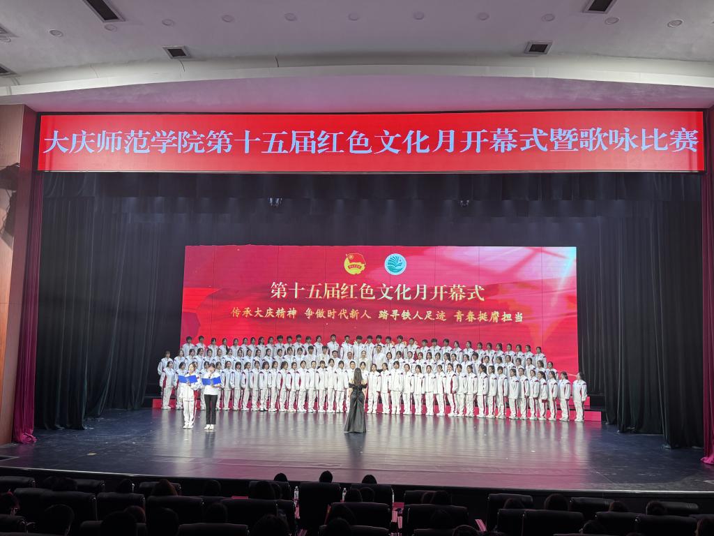 9月24日晚,大庆师范学院第十五届红色文化月正式拉开帷幕,开幕式暨歌咏比赛在大学生活动中心举行。外国语学院百余名师生组成合唱队登台献唱,用铿锵有力的歌声传递红色基因