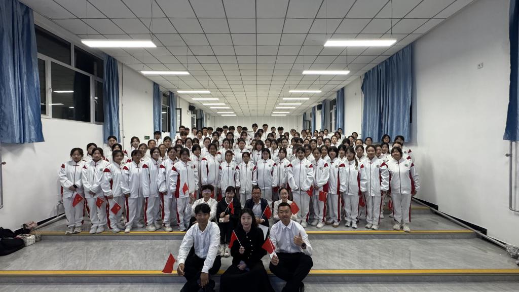 比赛现场,外国语学院的师生们身着整齐服装在悠扬的伴奏下,唱响了《国家》《时代号子》两首经典红歌。歌声中,既有对祖国的深情眷恋,又有新时代奋斗者的昂扬气势,从队列风貌到演唱情感,细节饱满,全面展现了学院师生的凝聚力与红色情怀。