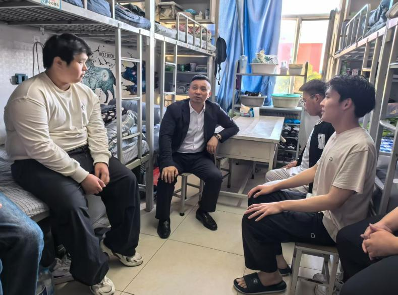 在新生宿舍,曲书记与新生亲切交谈,从校园环境的感受到专业学习的初步规划,全方位关注新生的所思所感。认真倾听同学们在生活中、学业上面临的困惑,耐心询问是否习惯餐厅饮食、军训强度是否适应,学校的浴池怎样收费等。他叮嘱同学们要多参加体育锻炼,多去图书馆看看书,在校期间努力学习,做好职业规划。