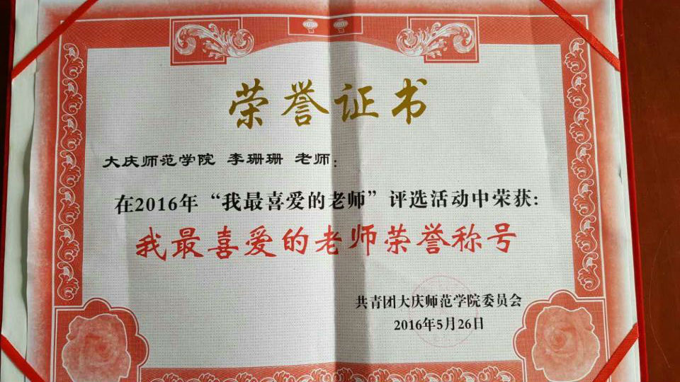 李珊珊,女,群众,大庆师范学院外国语学院俄语系教师。自参加工作以来她矢志教学改革,求实创新,勇于奉献,凭着强烈的事业心和严谨的治学态度教书育人,多次获学校先进工作者荣誉称号。